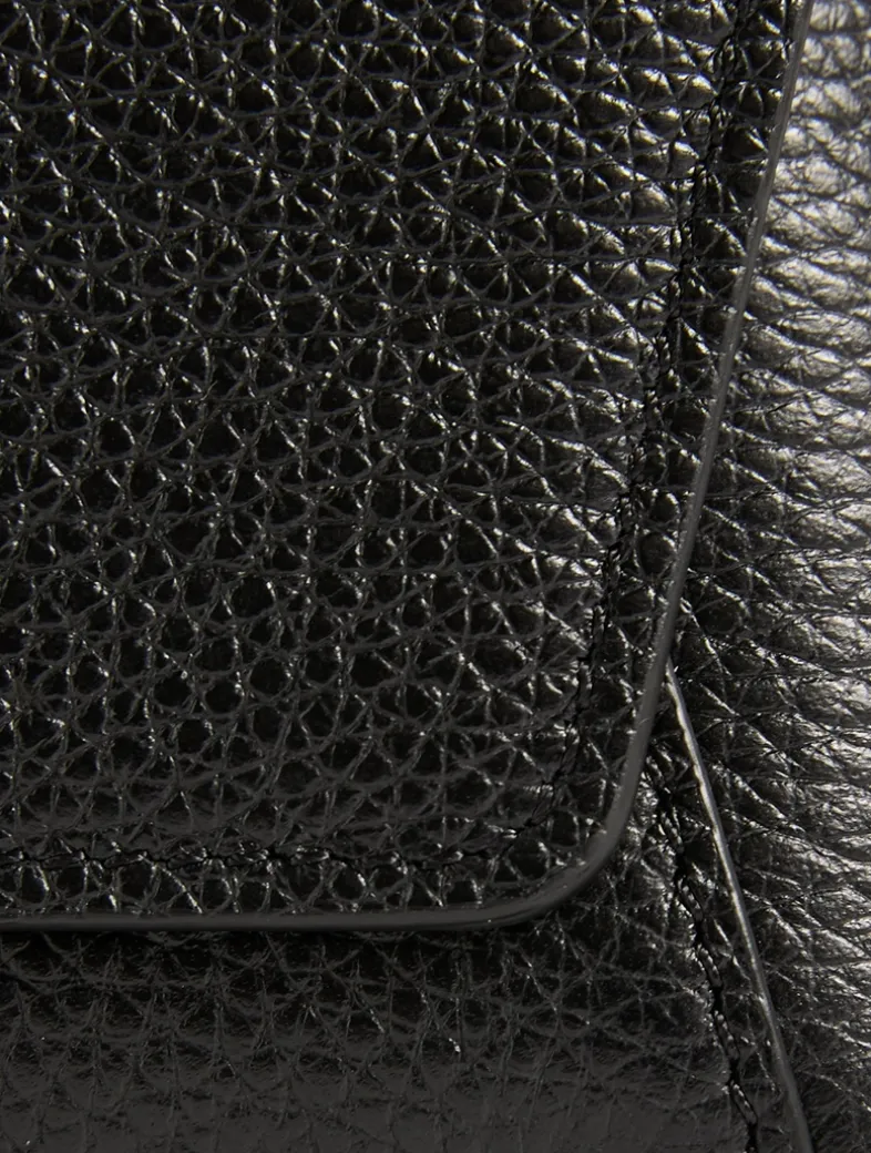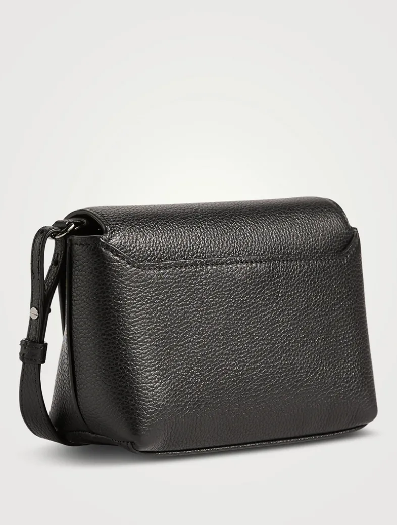 Crafted of grained leather, this crossbody pouch is designed with signature trapezoid turn lock and an interior zip pocket.