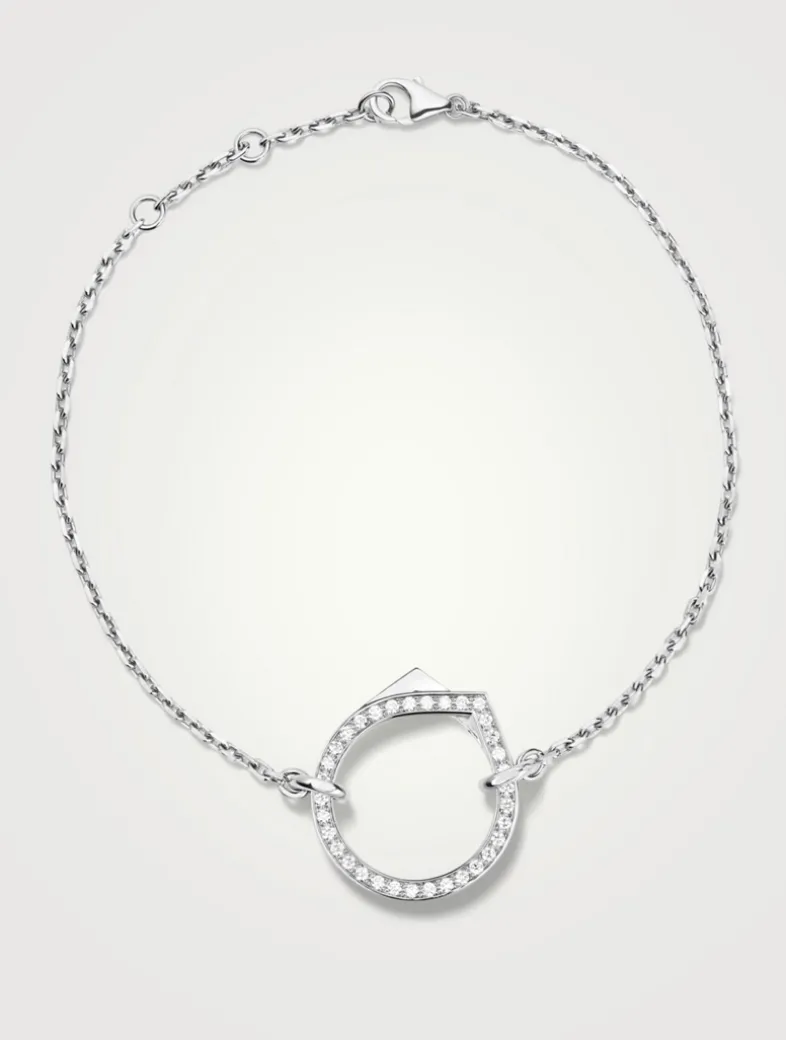 Made in 18k white gold, this chain bracelet is designed with a two-row Antifer motif with a single row paved with diamonds.
