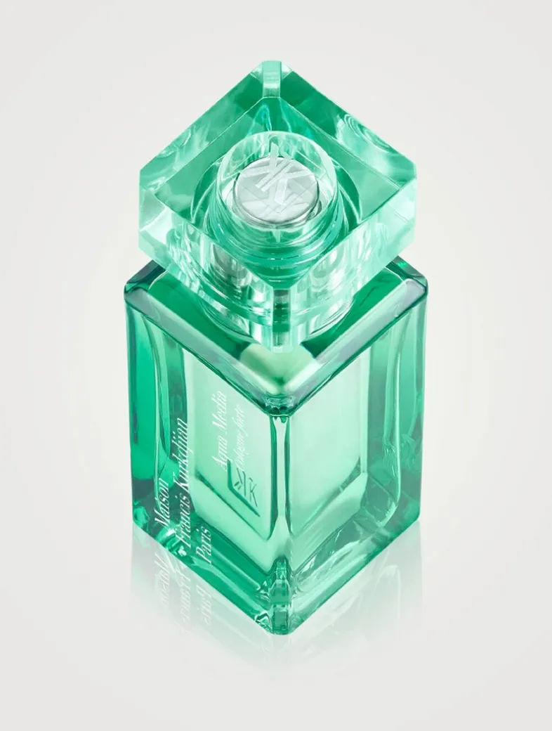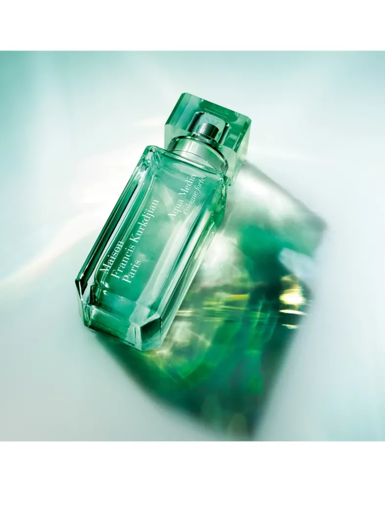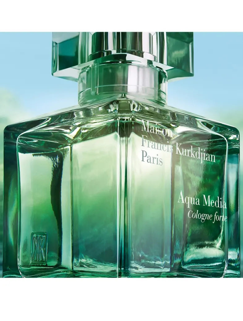 Evoking both water and light, green is the middle colour of the rainbow prism and reflects balance in motion. It is embodied in the vibrant freshness of Aqua Media Cologne forte, featuring bergamot from Calabria, verbena, sweet fennel, hedione, and a woody musk accord.