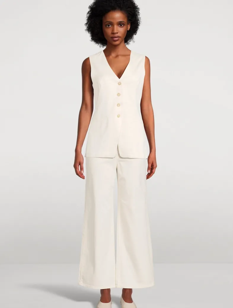 Ari is a modern high-rise, wide-leg pant with a lightweight, relaxed fit and an ankle-length inseam. Crafted from super soft denim, this pair comes with utility pockets and a waistband tie.