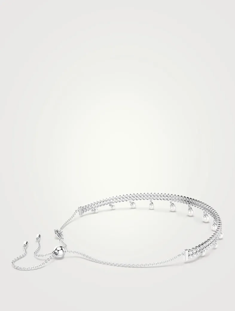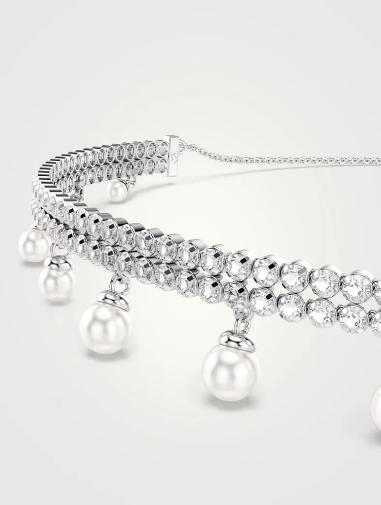 Co-created with Ariana Grande and Swarovski Global Creative Director Giovanna Engelbert, this capsule collection celebrates the love of music and the art of timeless style, combining spellbinding savoir-faire with contemporary cool. This rhodium-plated choker features two rows of cupchain set with Swarovski Zirconia in round cuts and Swarovski Crystal Pearls, with an adjustable sliding ball closure for a perfect fit.