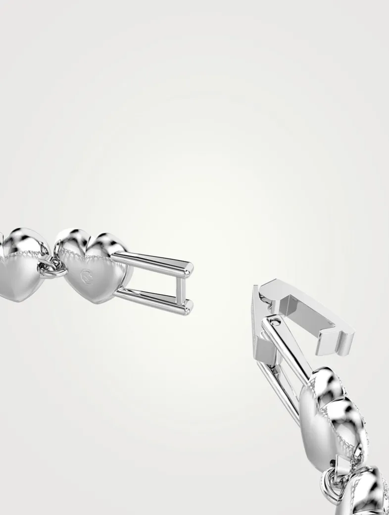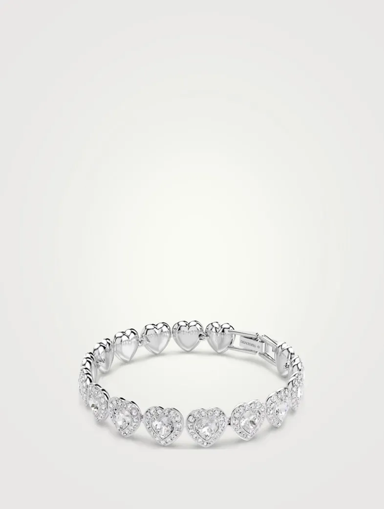 Co-created with Ariana Grande and Swarovski Global Creative Director Giovanna Engelbert, this capsule collection celebrates the love of music and the art of timeless style, combining spellbinding savoir-faire with contemporary cool. This rhodium-plated bracelet features a circle of heart-shaped crystals surrounded by clear pavé, adding a radiant, romantic touch.