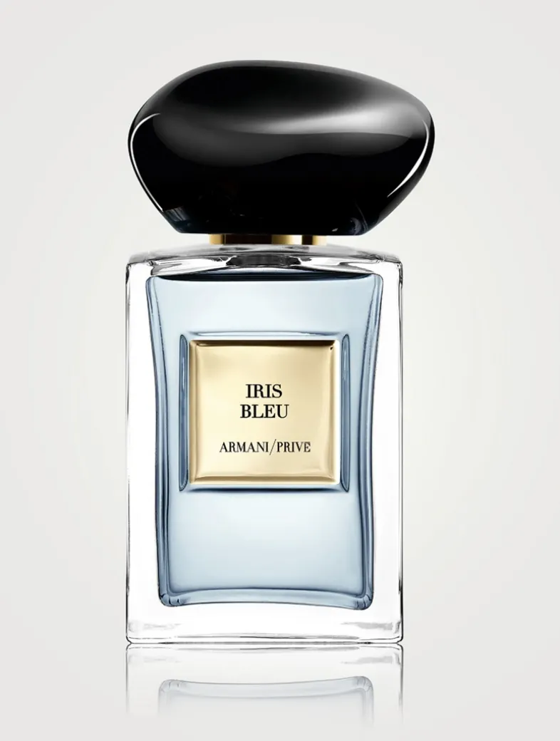 Giorgio Armani presents Armani/Privé’s Les Eaux Haute Couture fragrance, Iris Bleu—a floral scent inspired by the Mediterranean blue hour, where the sea and sky merge. Blending Iris flower & green jasmine, it evokes dawn’s serenity. Housed in an Armani Privé bottle with a black stone-shaped cap and gold nameplate, this bottle exudes sophistication.