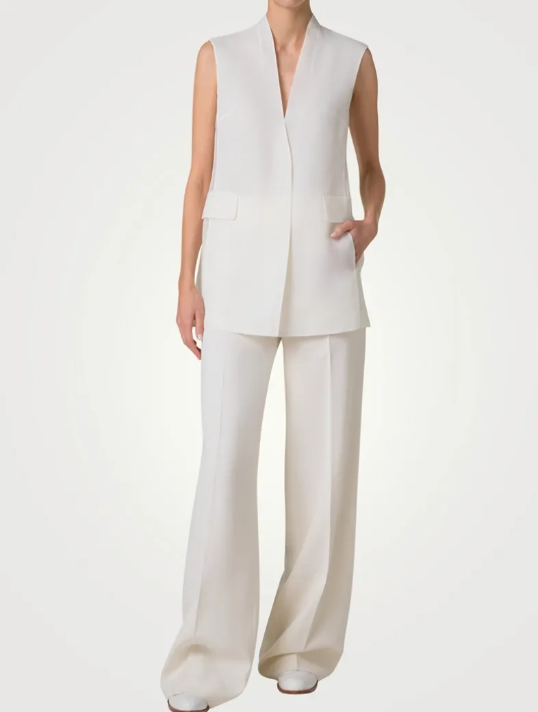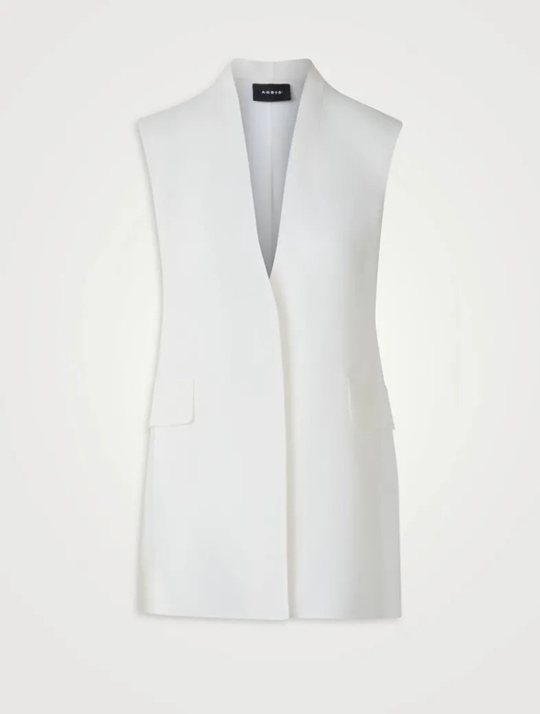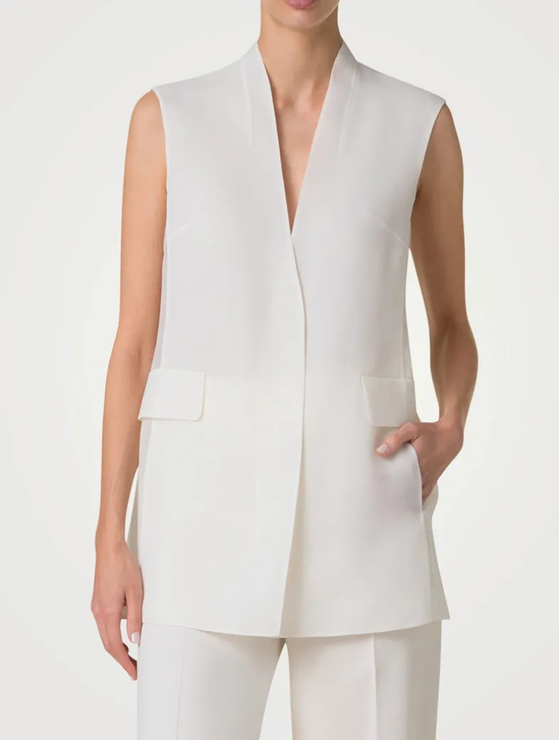Crafted in silk organza, this cardigan-style vest is designed in a single breasted, hip-skimming silhouette. The organza fabric shines in a collarless shape with a sheer back.