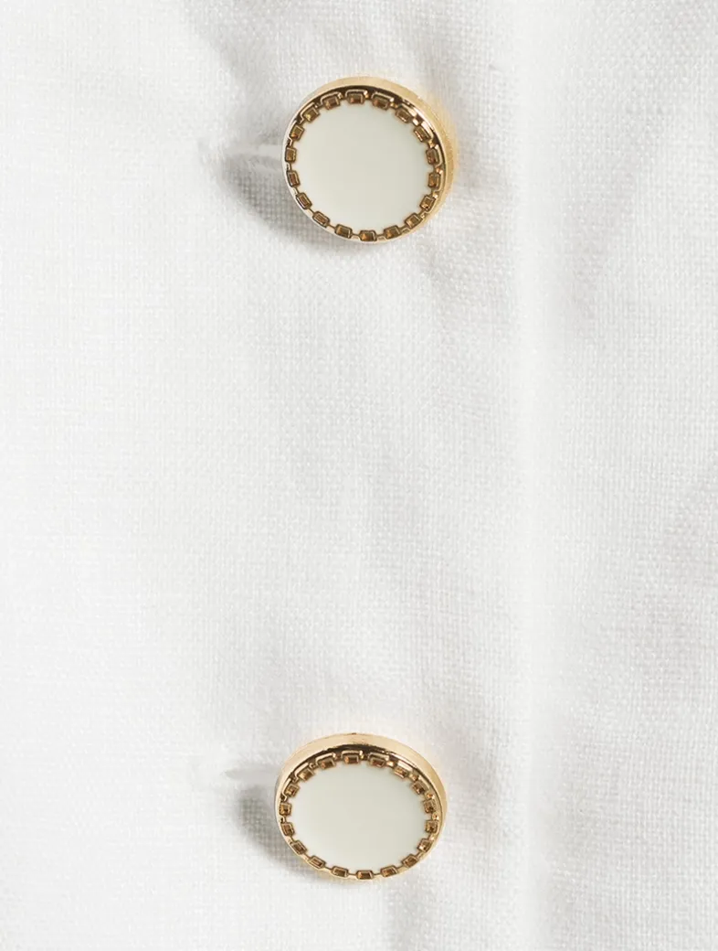 Crafted from a light-as-air linen, this sleeveless top exudes a refined simplicity. Designed to be fitted throughout, it has polished buttons lining the front, faux pockets at the waist, and an adjustable tab at the back waist to alter the silhouette. Bluesign® certified.