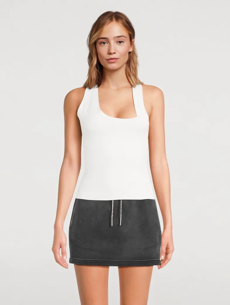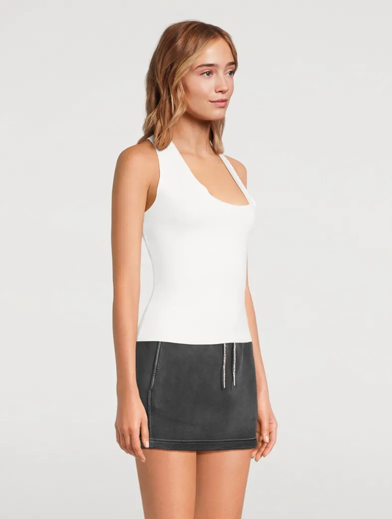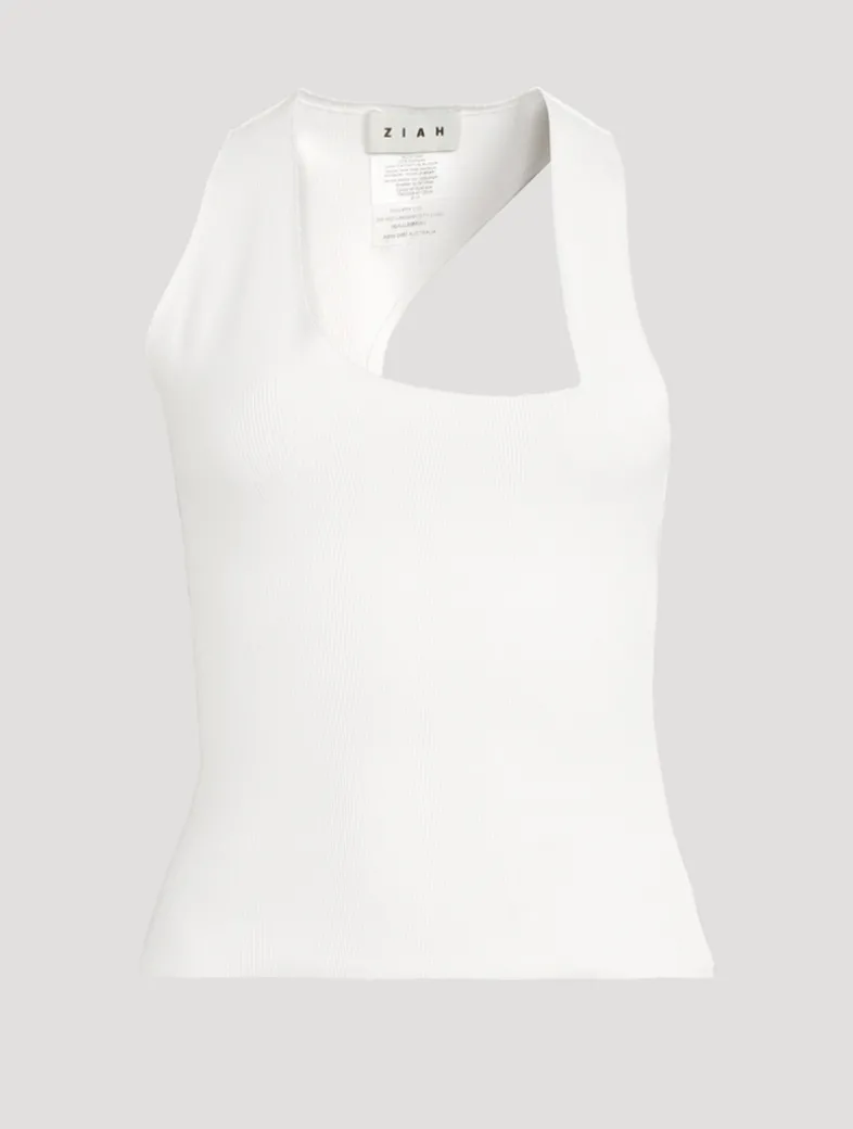 A modern take on the tank top. Asymmetric cut-out neckline and body hugging fit for ultimate comfort and ease.