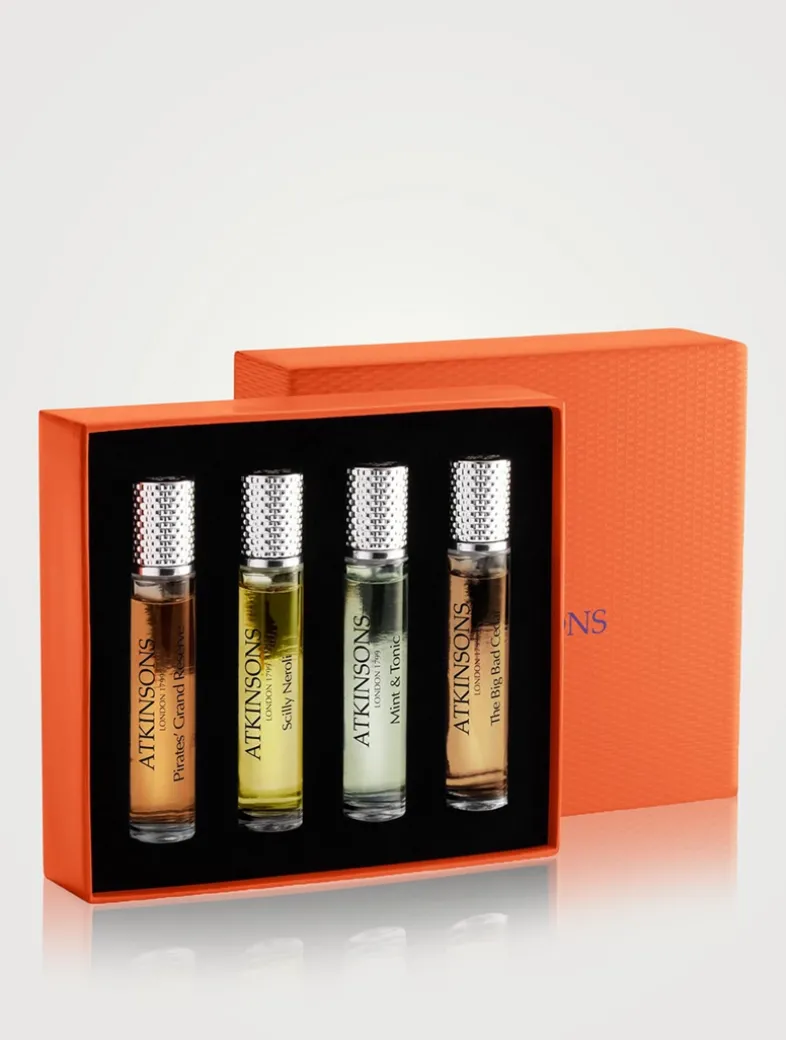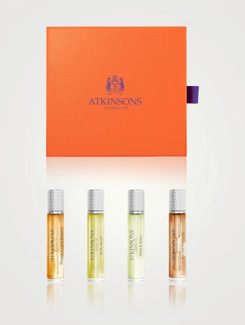 Experience curated fragrance collections from Atkinsons, the perfumer who created some of England’s finest scents. The Gems of the Empire set from Atkinsons is an homage to British Heritage. This genderless 4 x 10ml set includes scents that personify British culture, literature and manners including Pirates’ Grand Reserve, Scilly Neroli, Mint & Tonic, Big Bad Cedar. James Atkinsons created curated fragrance collections and was the official perfumer to the Royal Court of England.