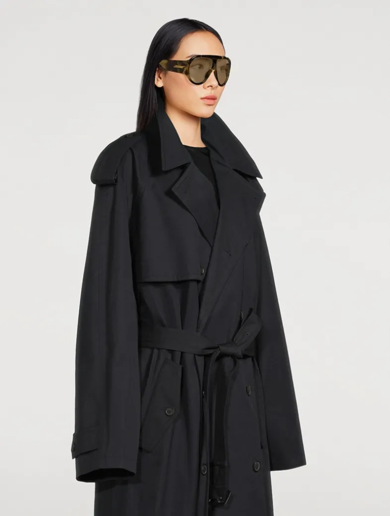 Crafted in Italy, this unisex style is designed with a bold aviator frame made from recycled acetate. The sunglasses are given a signature look the brand’s emblematic ribbon motif adorning the temples.