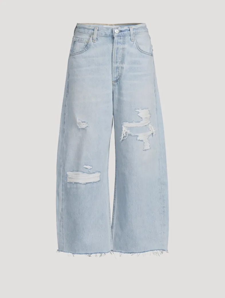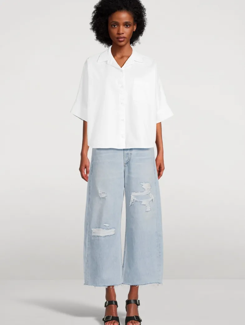 The Ayla Crop, inspired by a reworked vintage silhouette, features a slightly relaxed but flattering top block that transitions into a roomy leg with a raw-edge hem. This product is made with regenerative cotton from Citizens of Humanity Group’s Regenerative Cotton Program, which collaborates closely with farmers both domestically and internationally, nurturing growth, fostering education, and encouraging the widespread adoption of regenerative agricultural practices.