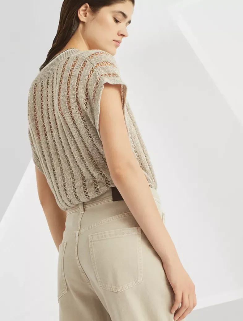 Dyed comfort denim baggy tapered trousers