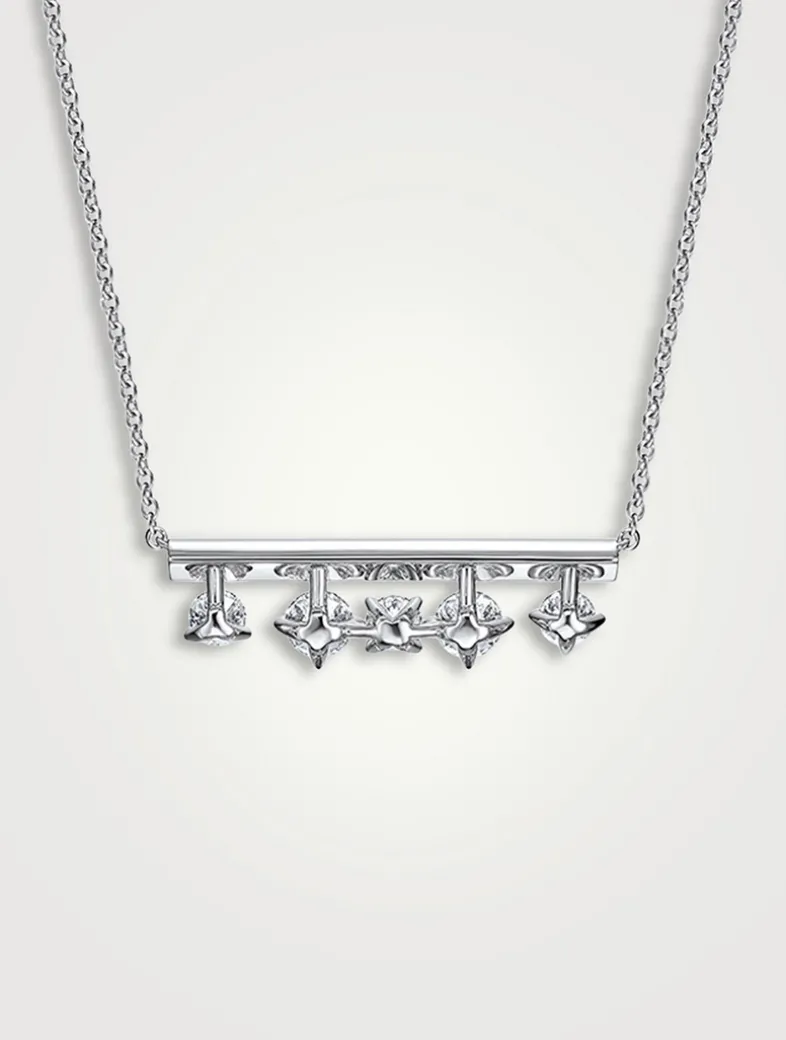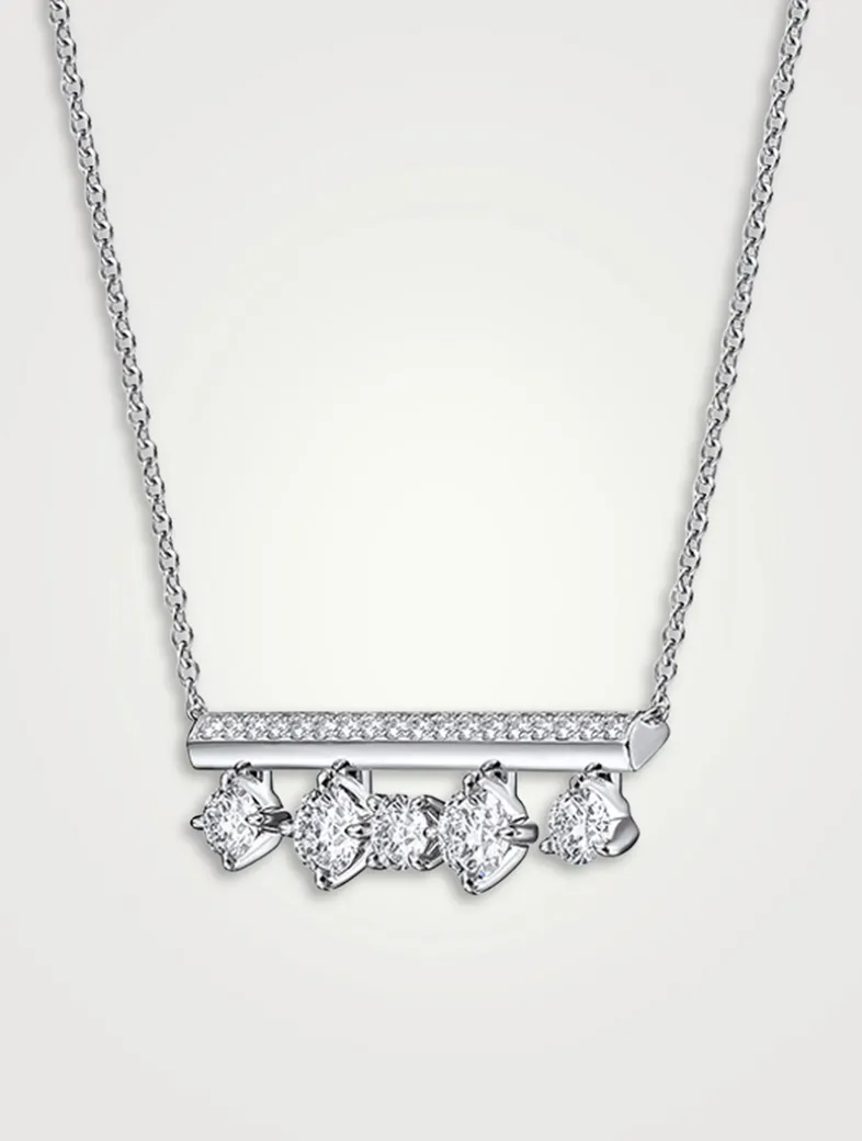Made from 18k gold, this graphic horizontal line pendant necklace is accented with diamond drops and clusters for extra sparkle.