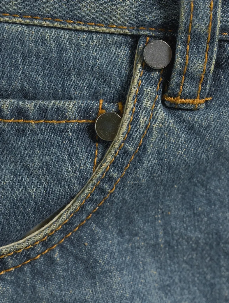 These barrel-leg jeans are made from 100% cotton denim in a vintage wash. Darts at the knee and ankle sculpt a round, curved leg shape. Finished with a released hem.