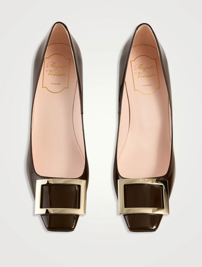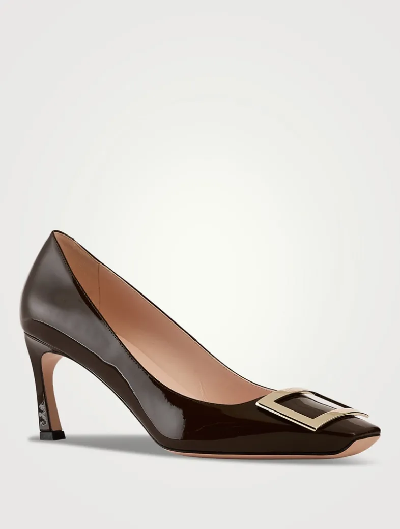 Make a distinct statement with the Belle Vivier Trompette pumps, handcrafted in patent leather with a metal buckle. This pair features the iconic Trompette heel, inspired by the 1970s, that slightly flares at the bottom.