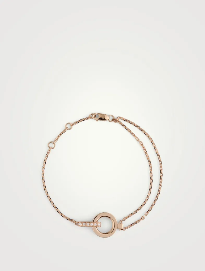 Expertly crafted in Italy, this delicate chain bracelet features a minimalist gold circle highlighted by a diamond-paved bar.