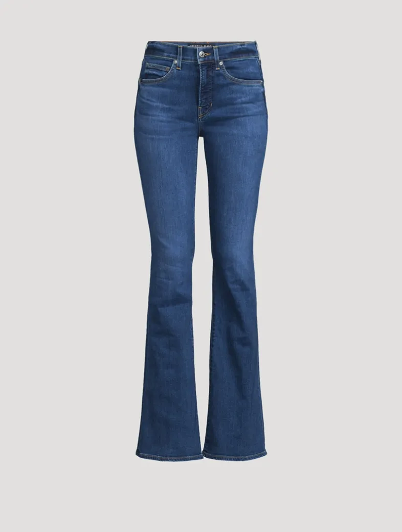 The Beverly jeans feature a high-rise waist that is fitted through the hips and thighs with a subtly flared leg. High quality stretch denim offers a flattering look with a flexible fit.