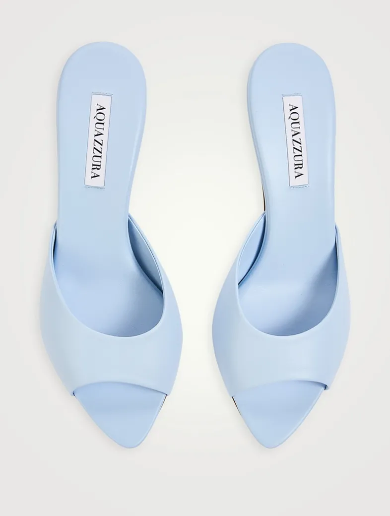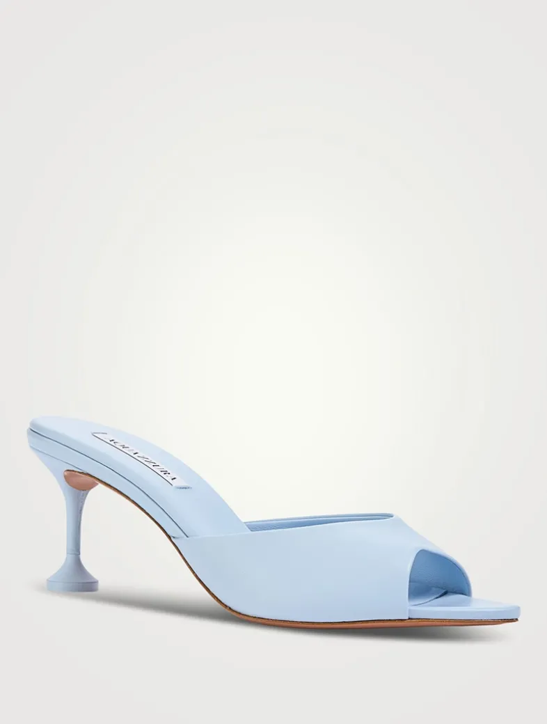 Timeless in its simplicity, the Bisous makes a chic statement with its backless profile, open toe, and gently fluted heel, which lends it a sculptural quality. Crafted from supple leather.