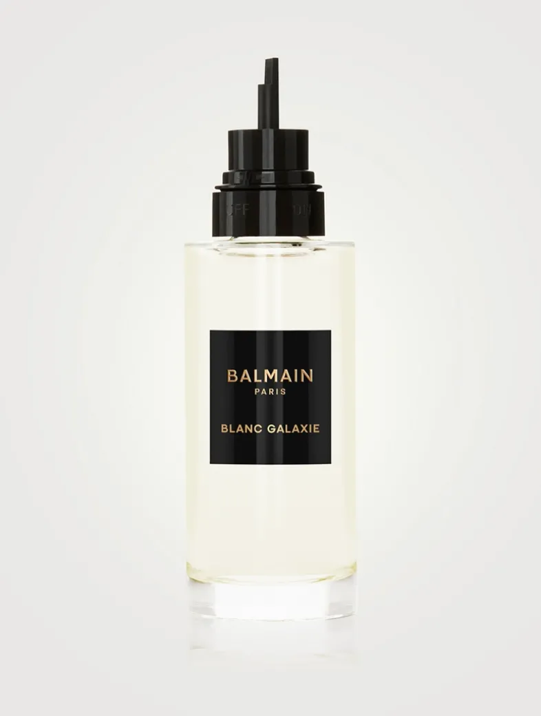 About the Bottle: In its cosmic white colour, the new bottle design takes inspiration from the 1946 Balmain Élysées 64-83. It retains the unique striated collar and 90-degree angle label while adding dimension to the new lozenge shape with a signature rayure Balmain and PB monogram.