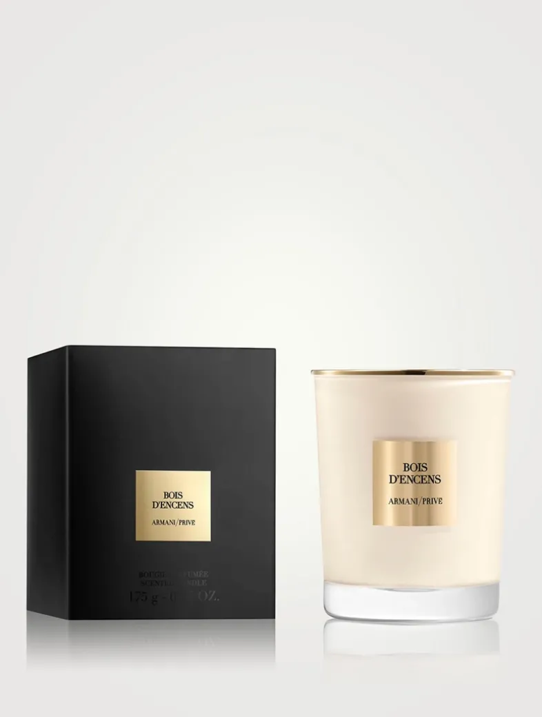 Armani/Privé, the Armani haute couture fragrances collection, unveils a range of scented candles that translate the refined Armani/Privé scents into evocative fragrances for the home. Bois d’Encens candle’s spicy woody scent evokes the warmth of incense smoke, for a sense of clarity and vision.
