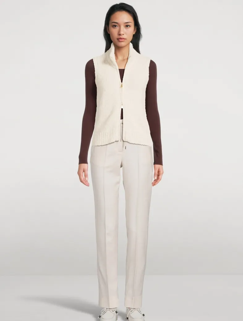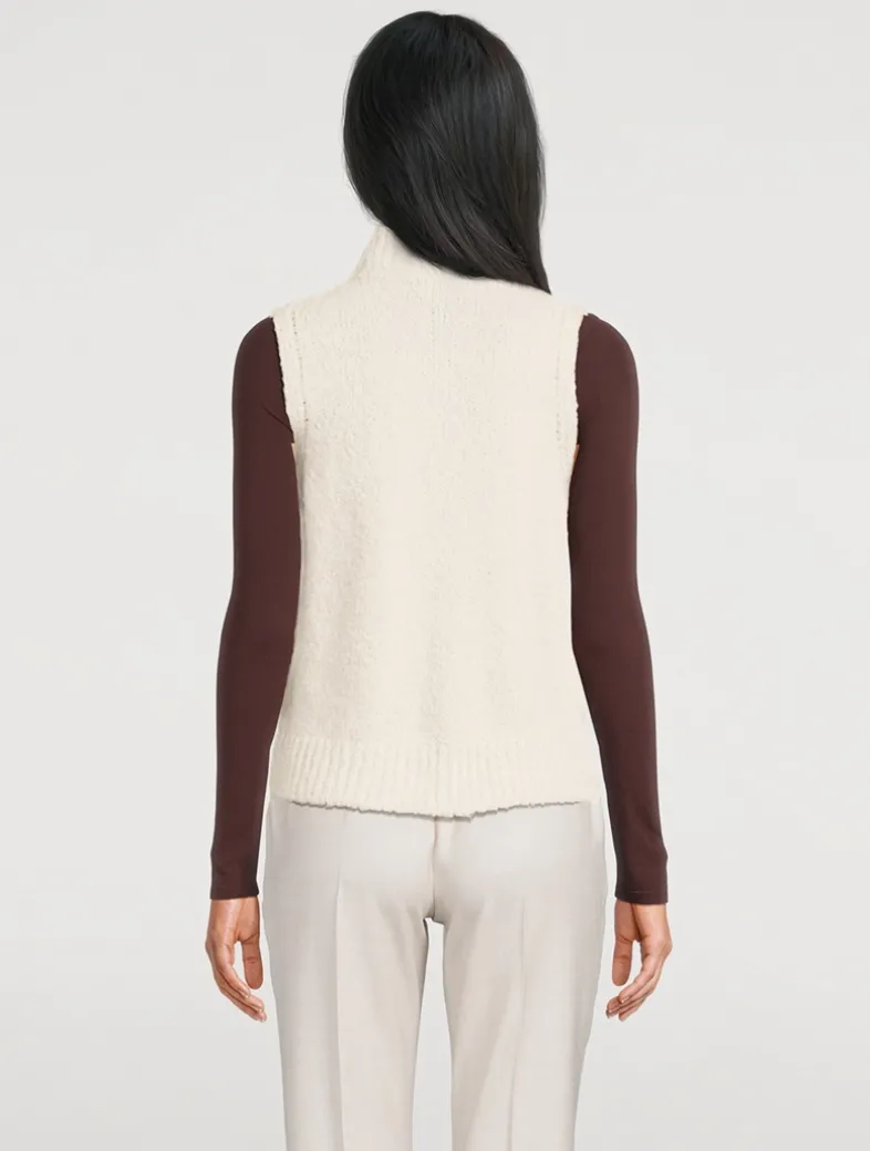 This full-zip vest, made from an exclusive blend of alpaca and wool, is further embellished with micro lurex inserts.