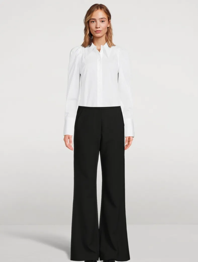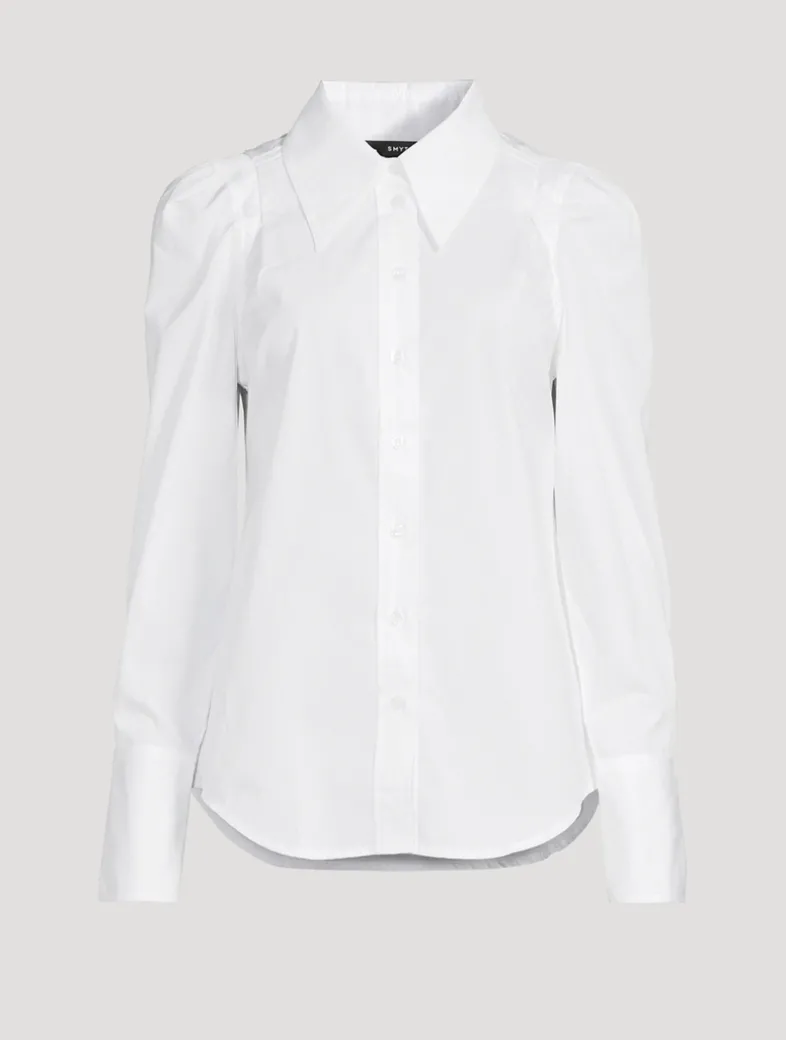 Moderately tailored, this polished take on a classic button-down features pleated shoulders and an exaggerated point collar. The cotton poplin shirt can be easily dressed up or down.