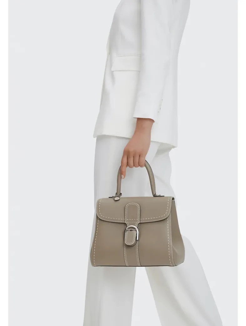 Inspired by the 1958 World Exposition in Brussels, this Delvaux classic handbag crafted in grainy Rodeo Calf leather highlights La Maison’s expertise in leather artistry. Revisited in timeless Tourterelle, its graphic lines and clean cut prove timeless in design. Contrasted Ivory hand-stitching details accentuate the delicate artisanship behind this timeless silhouette. The signature silver buckle is designed with a distinct horseshoe-shape, recalling the ‘D’ for Delvaux. Elegant and chic, the Brillant MM is the perfect companion for daily use.