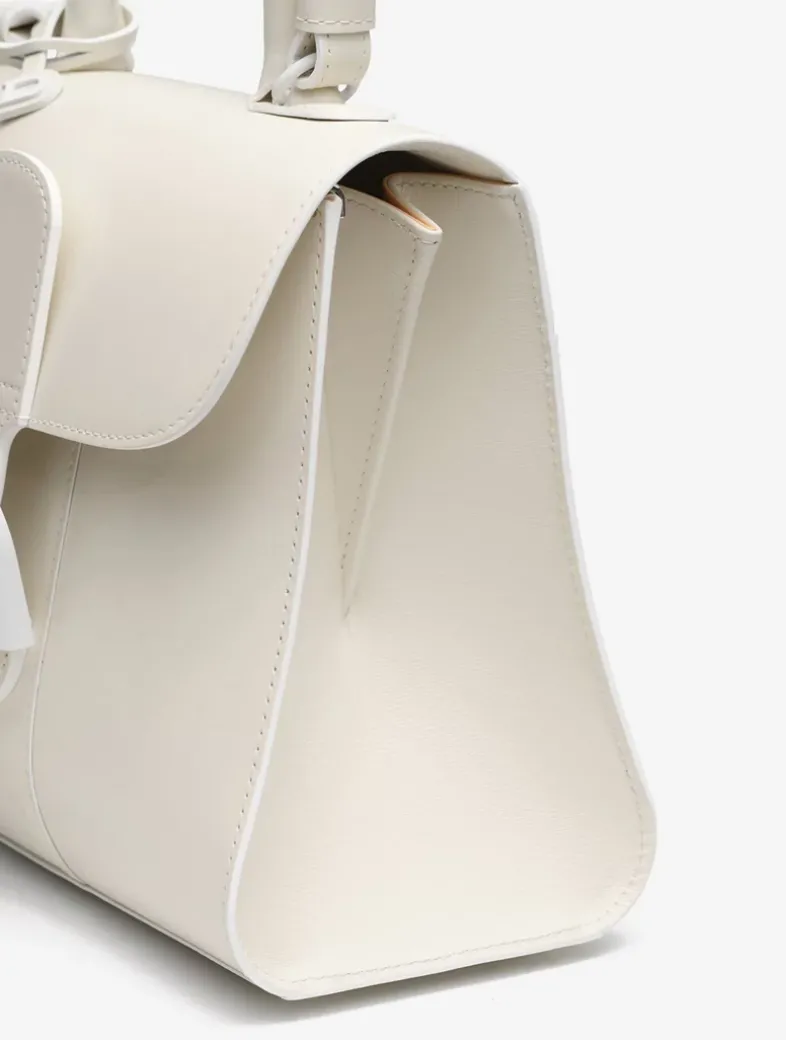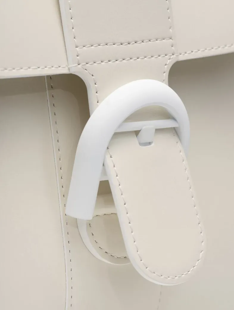 Crafted in Box Calf leather in Ivory, the Brillant PM stands out for its recognisable trapezoidal shape and signature horseshoe-shaped buckle. Finished with white metal hardware and a back exterior pocket, this sculptural bag may be worn as a hand or shoulder bag thanks to a removable and adjustable shoulder strap.