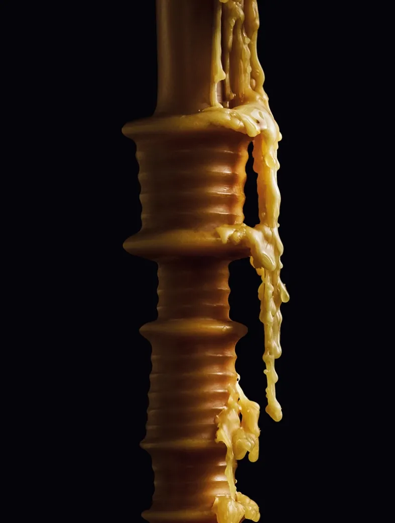 A bronze wax candleholder in a sculptural shape that offers more than just light—it enhances the atmosphere with its warm glow and pure, natural beeswax fragrance. Each one is highly crafted, guaranteeing that every piece is a distinct and singular creation. Place it on a heatproof surface like LOEWE’s black glazed terracotta candle base and let its gentle glow and natural scent transform your space with a functional yet aesthetic touch.