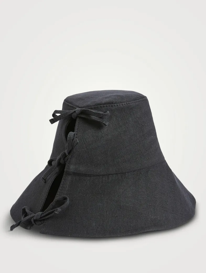 Crafted by hand in Ukraine from 100% linen, this bucket hat is finished with self-tie bows at the back and a tonal logo detail at the front.