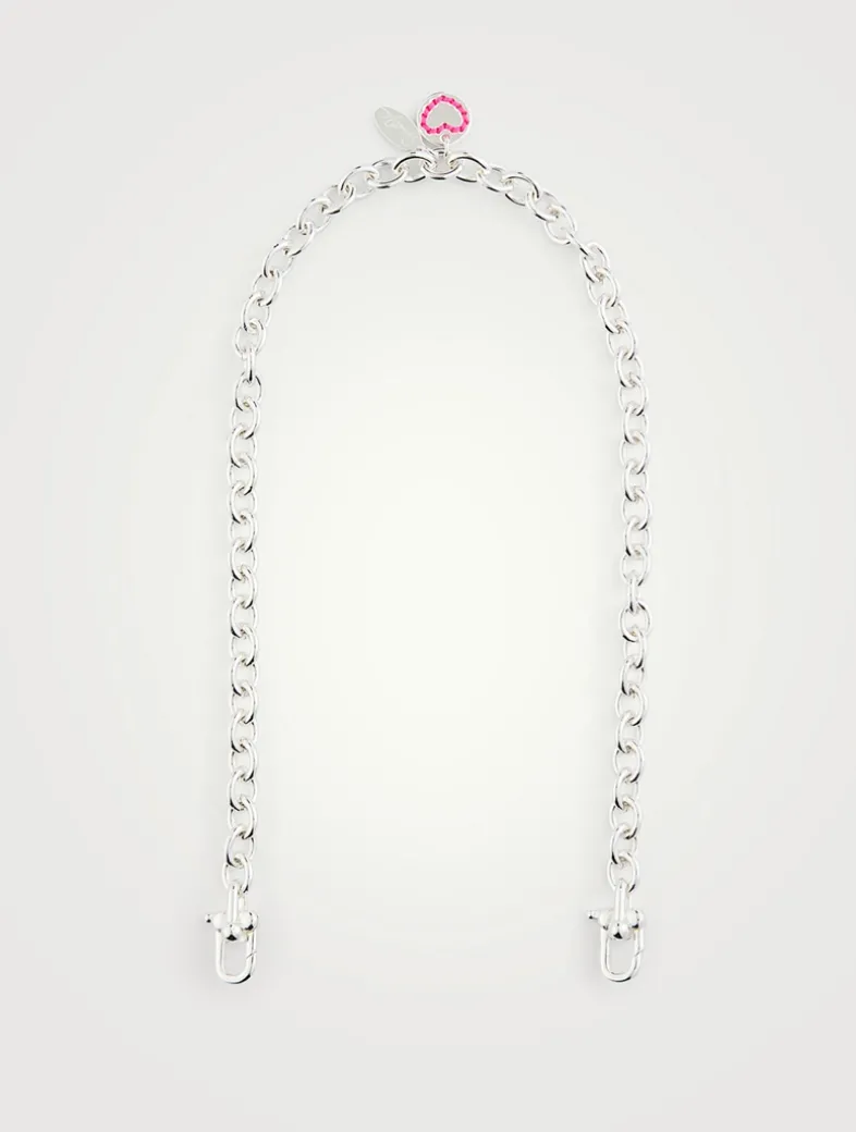 This chain necklace is crafted of 24K gold plated brass, and finished with two clasps on each end to interchange charms.