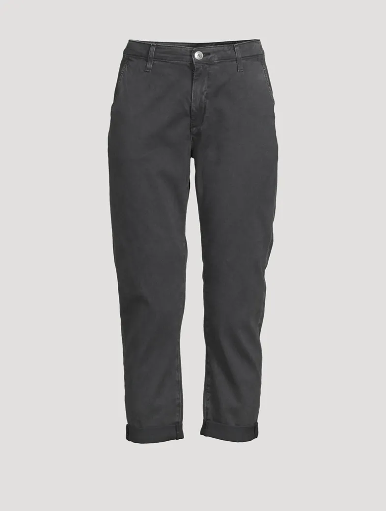 The Caden, AG’s tailored trouser in broken stretch twill, features a relaxed silhouette cut to a slightly cropped length. This pair is designed with slanted hip pockets at the front, and welt pockets at the seat. A zip fly with button closure completes the look.