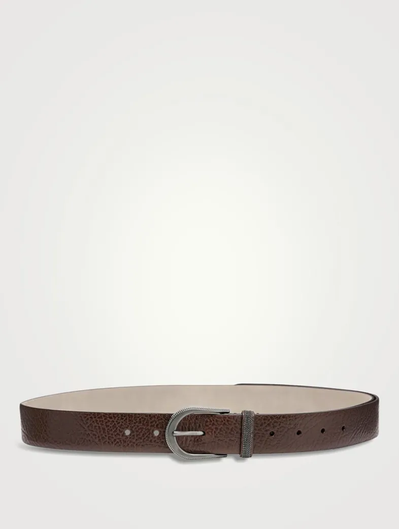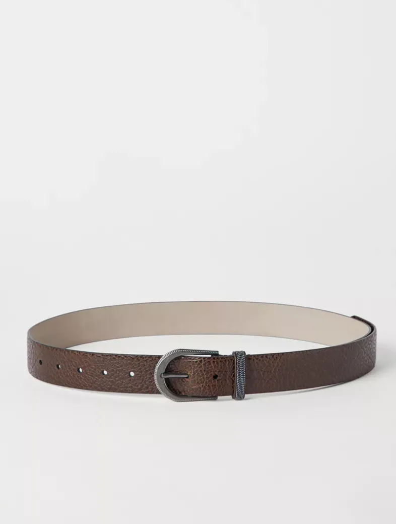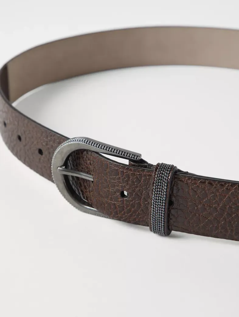Glossy hammered calfskin belt with monili