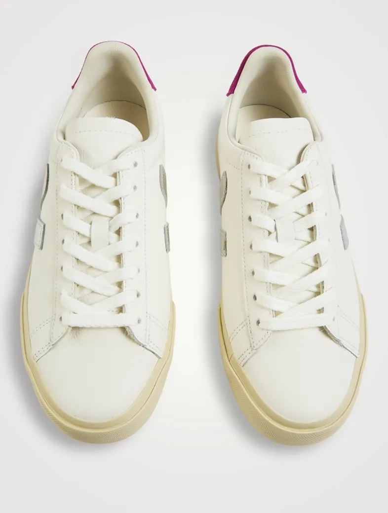 These lace-up sneakers are made out of ecological and sustainable materials. Made in Brazil, the chrome-free leather low-tops are lined in a fabric made from recycled polyester, while the sole consists partly of wild rubber from the Amazonian forest. A metallic leather V logo is stitched on the side, and ‘VEJA’ is stamped on the heel tab and at the side.