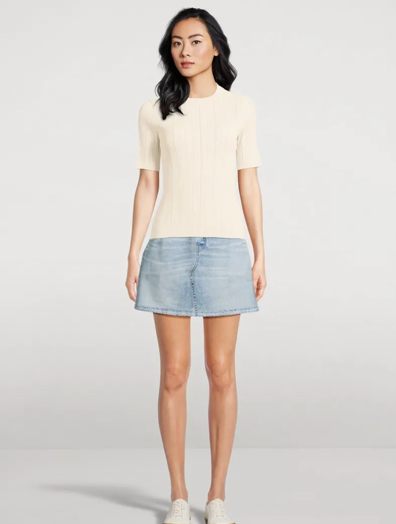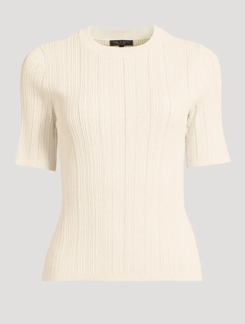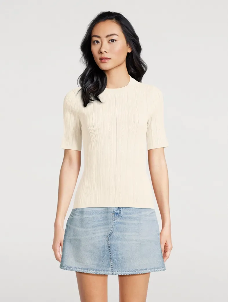 Cut to a slim-fit silhouette, this short-sleeve tee has a delicate pointelle knit construction crafted from cotton with a hint of stretch.