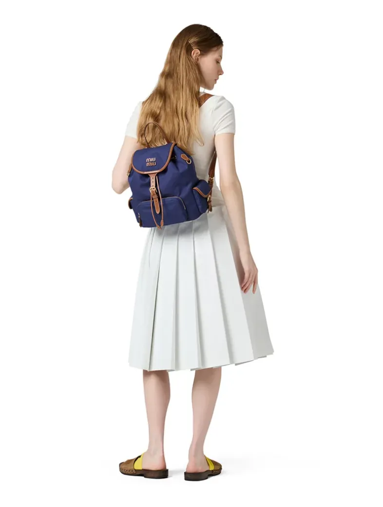 Leather handle Front zipper pocket Side flap pockets Gold-tone hardware Flap closure with buckle Linen blend interior with zipper pocket Classic backpack harness with shoulder straps, minimum length 67 cm, maximum length 76 cm Leather lettering logo on the flap