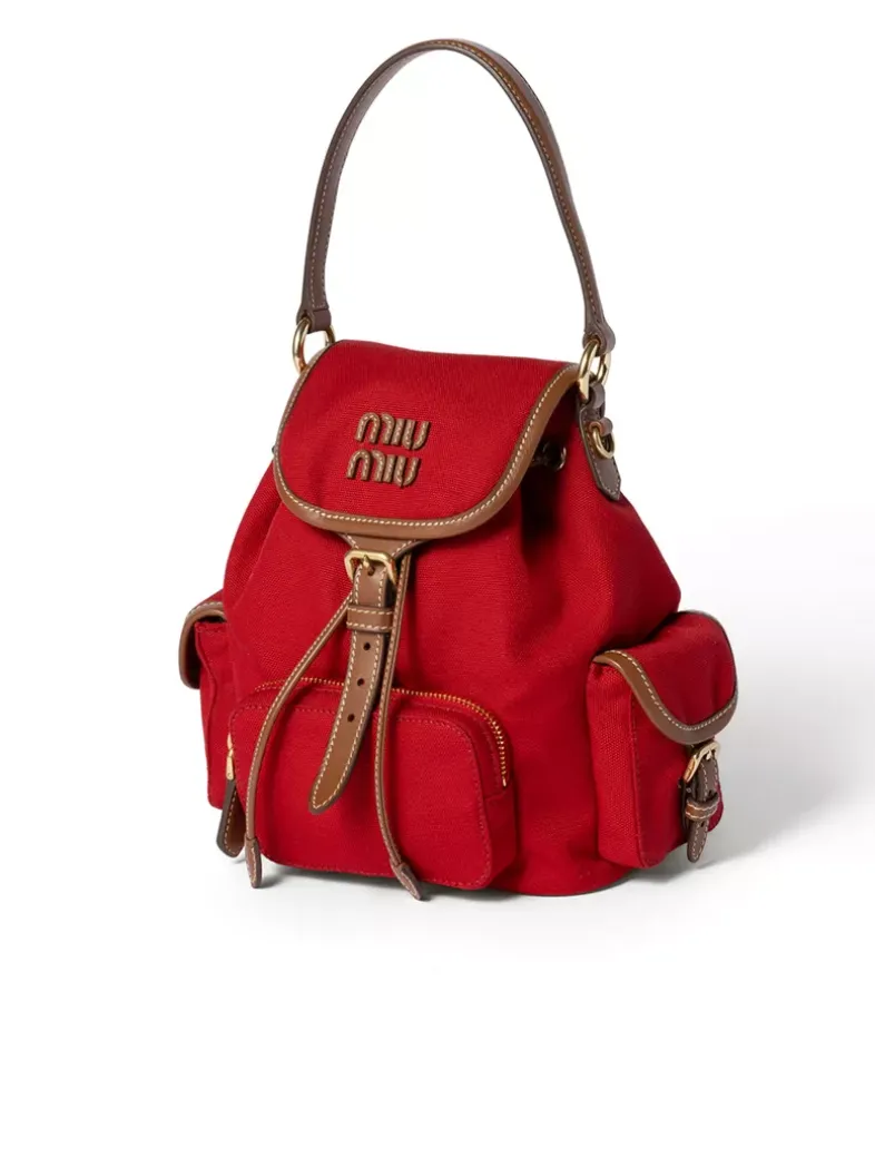 Leather handle Front zipper pocket Side flap pockets Gold-tone hardware Flap closure with buckle Linen blend interior with patch pocket Backpack can be worn in two ways: classic harness with straps, minimum length 65 cm, maximum length 68 cm, or crossbody strap, length 110 cm – drop 53 cm Leather lettering logo on the flap