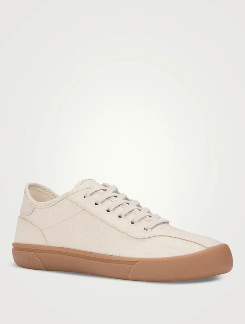 Made in Italy, these athletic sneakers are made from a linen and canvas blend with tonal grosgrain trim, stitched detailing, and textured rubber sole.
