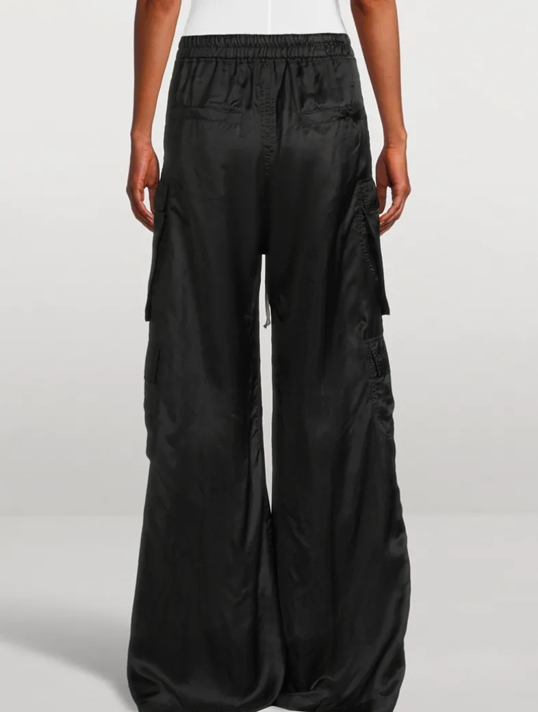 These wide-leg pants are designed with an elasticized drawstring waistband and embellished with an exposed centre zipper. As functional as they are stylish, these pants are equipped with four bevelled cargo pockets, two welt pockets at the side with rivet and eye detail, and two welt pockets at the back.