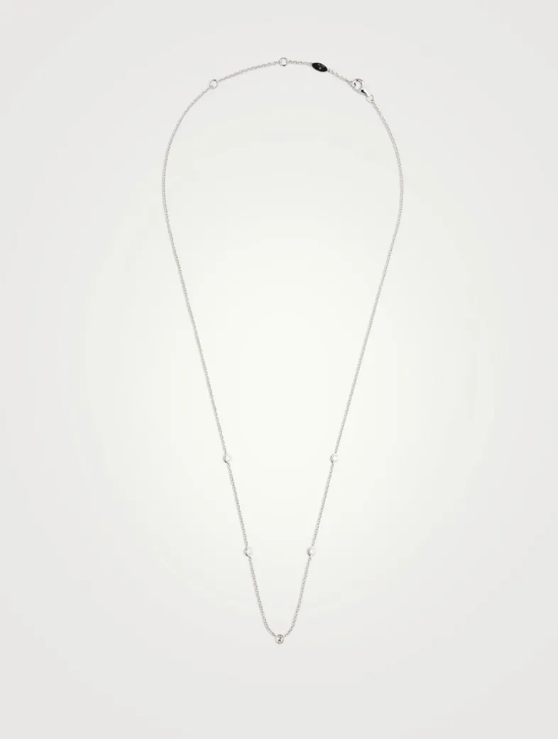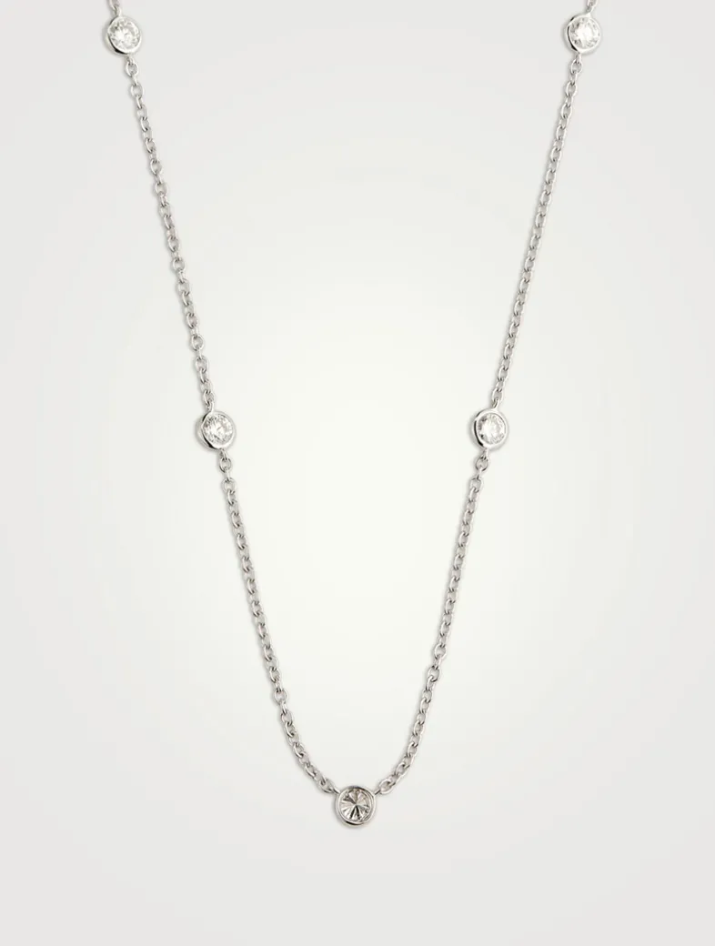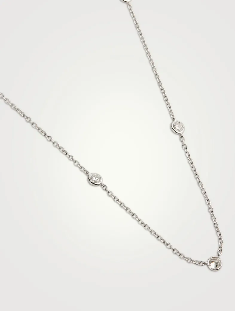 Stationed with five sparkling diamonds, this adjustable chain necklace exemplifies MEMOIRE’S dedication to quality and craftsmanship.