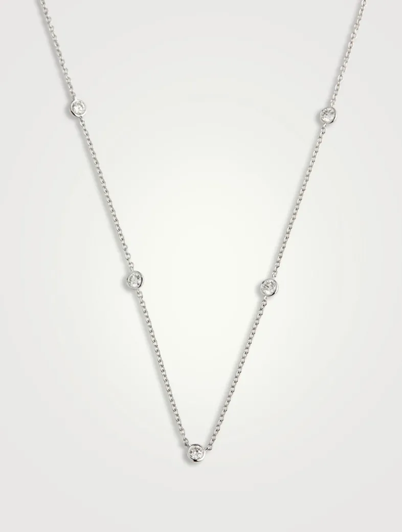 Stationed with seven sparkling diamonds, this adjustable chain necklace exemplifies MEMOIRE’S dedication to quality and craftsmanship.
