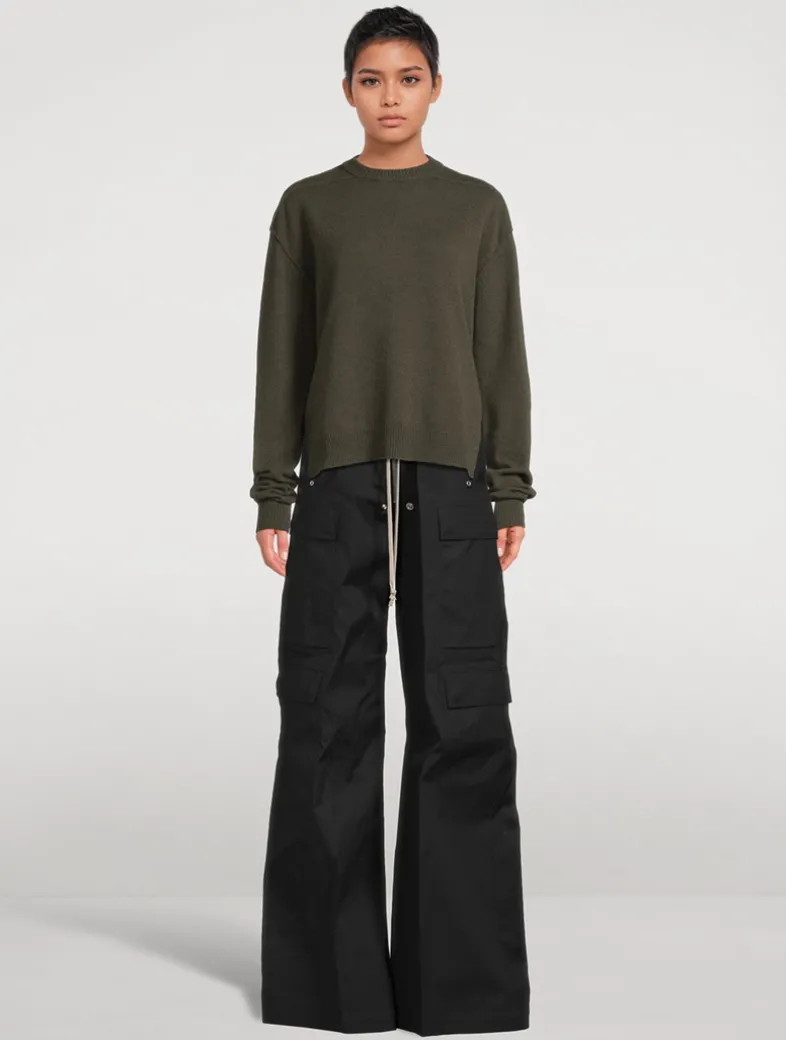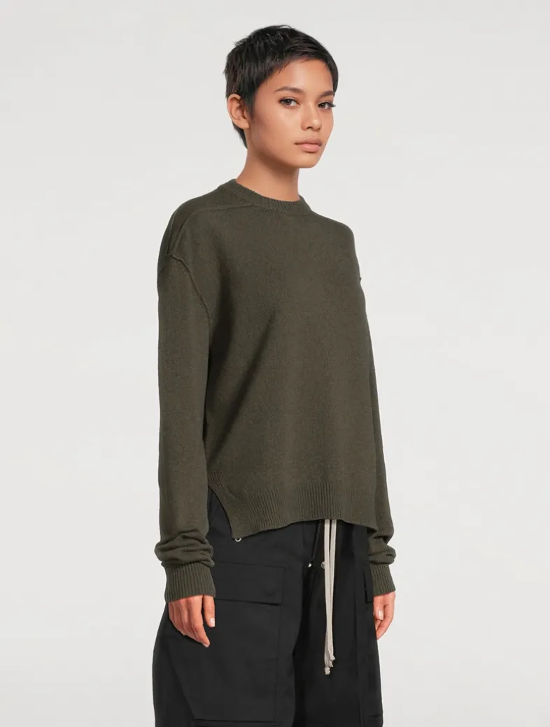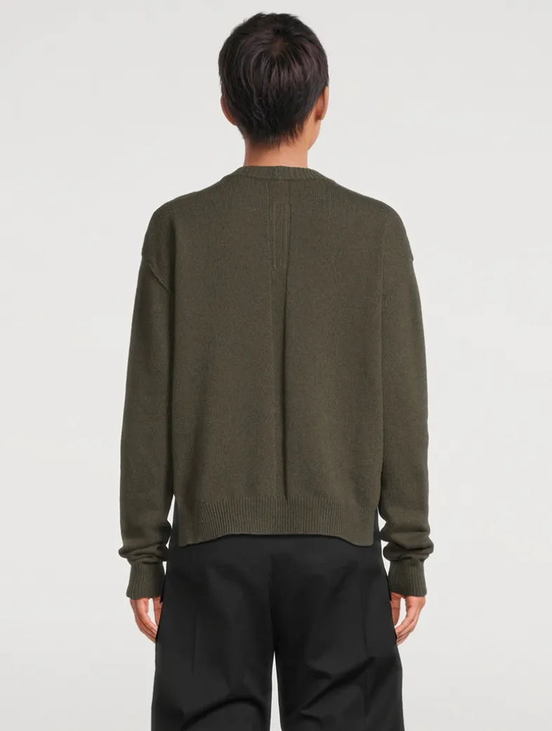 Crafted from a cashmere and wool-blend, this long-sleeve knit pullover is detailed with a ribbed round neck, cuffs and hem. Finished with signature level shoulder seams, and a knit line running down the centre back spine.