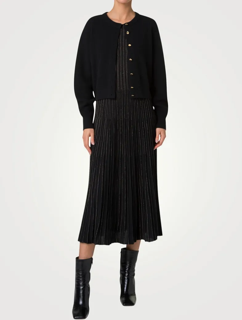 Crafted from 100% cashmere, this luxurious knit cardigan features an elegant rounded neckline, long sleeves, and gold-tone button fastenings down the front. Ribbing throughout gives the piece a touch of sophistication and enhances its flattering fit, making it a perfect layering staple to elevate any ensemble.