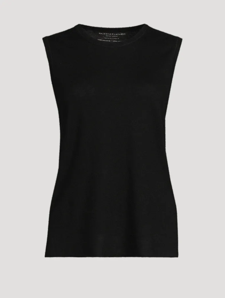 Crafted in Italy from a light-as-air cashmere, this sleeveless top is a minimalist essential that can be layered or worn on its own. It has a relaxed silhouette with a crew neckline and side slits at the hem.