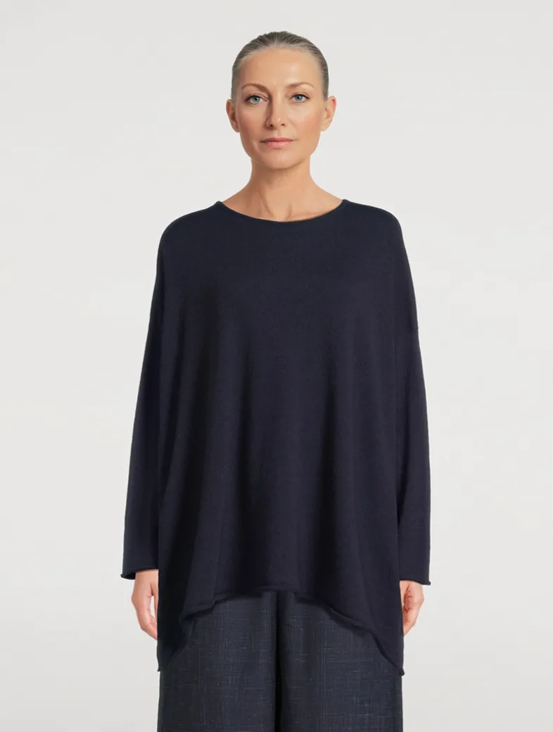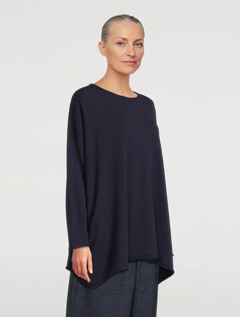 Made in Scotland, this long-sleeve pullover is designed with dropped shoulders. Crafted in a lightweight cashmere knit, the sweater is finished with a round neckline and an asymmetric hem.