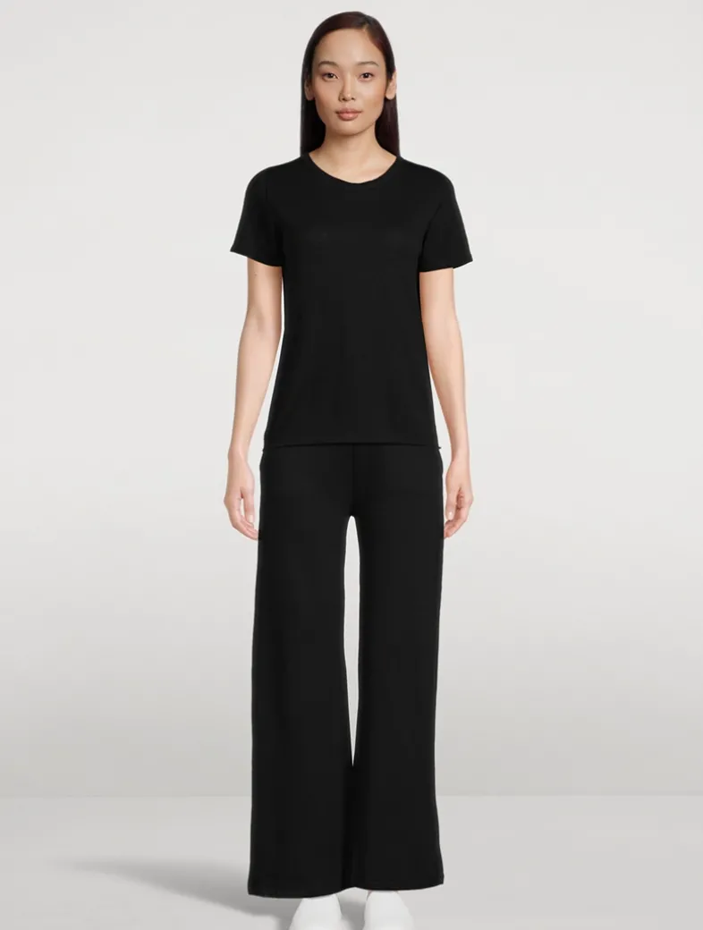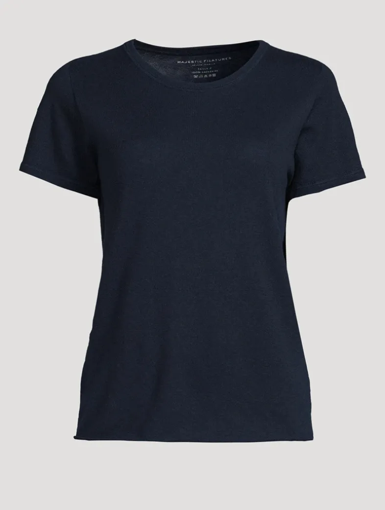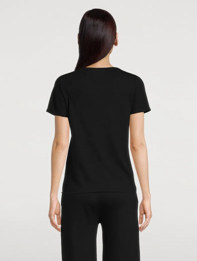Handcrafted and produced in the brand’s factories in Italy, this short-sleeve T-shirt is knit from 100% machine washable cashmere. The light weight of the top works for every season.