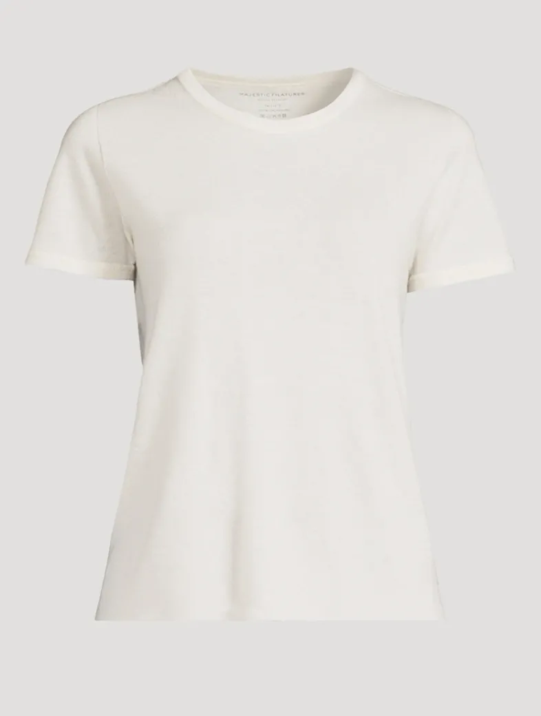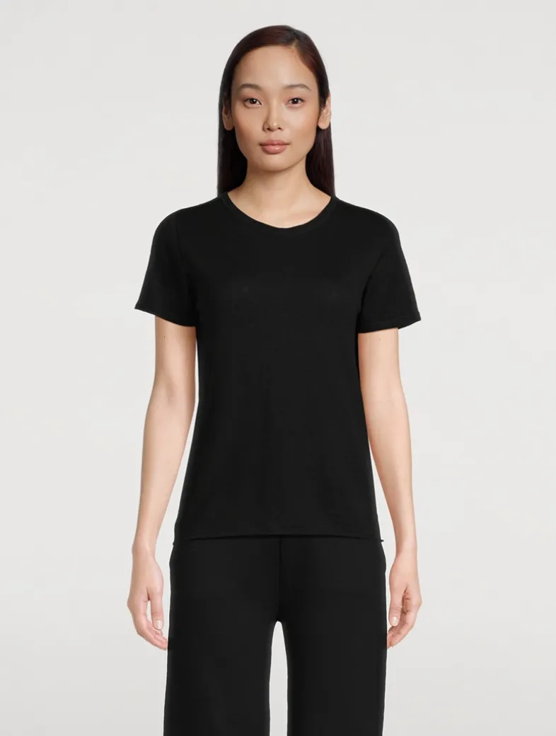 Handcrafted and produced in the brand’s factories in Italy, this short-sleeve T-shirt is knit from 100% machine washable cashmere. The light weight of the top works for every season.