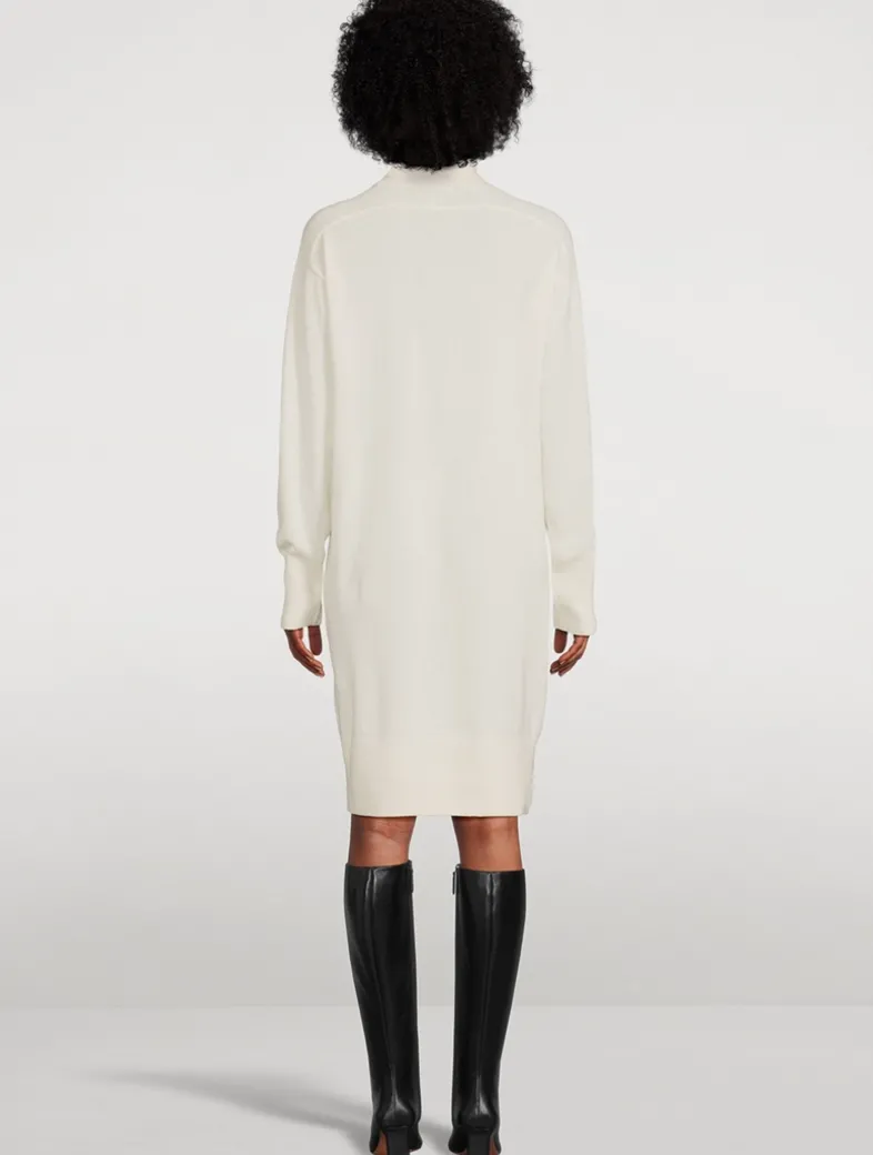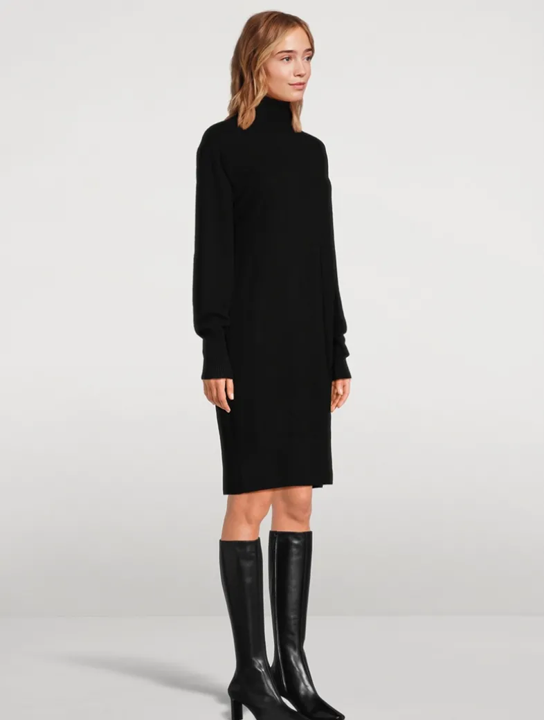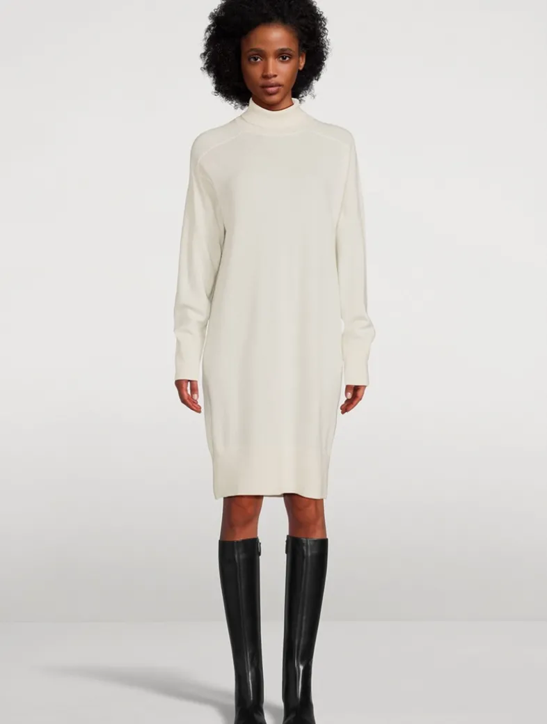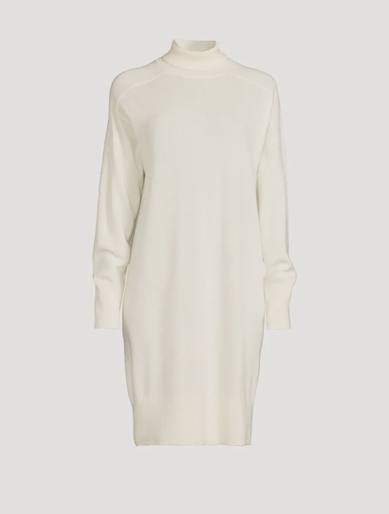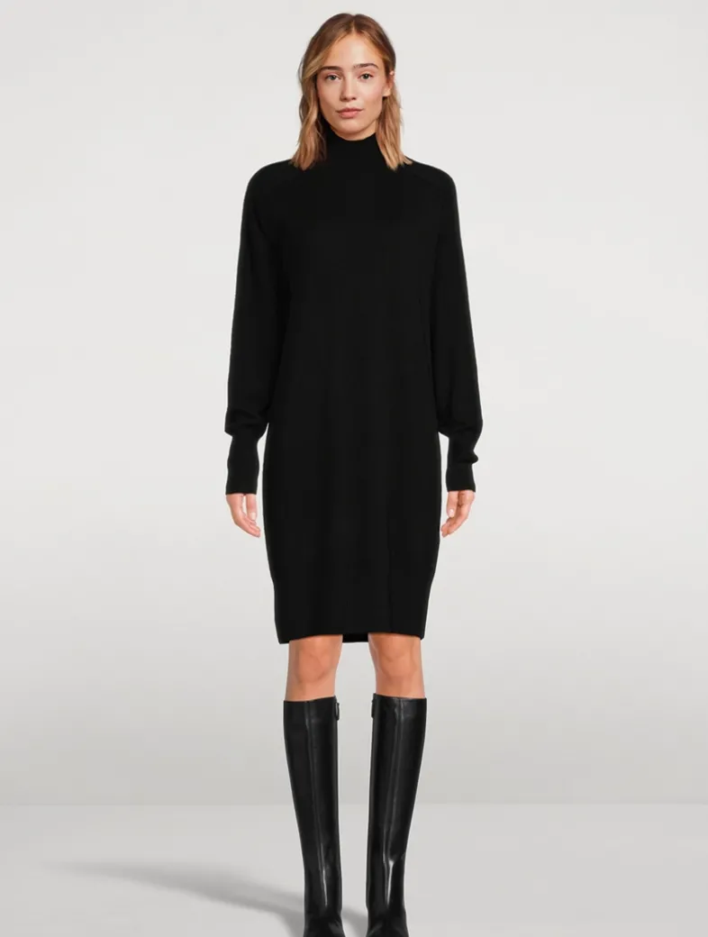 Knit from cashmere, this long-sleeve sweater dress has a slouchy design and a high neckline.