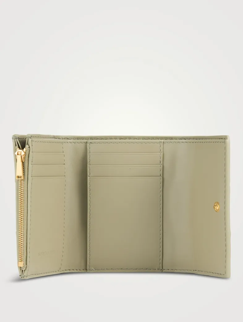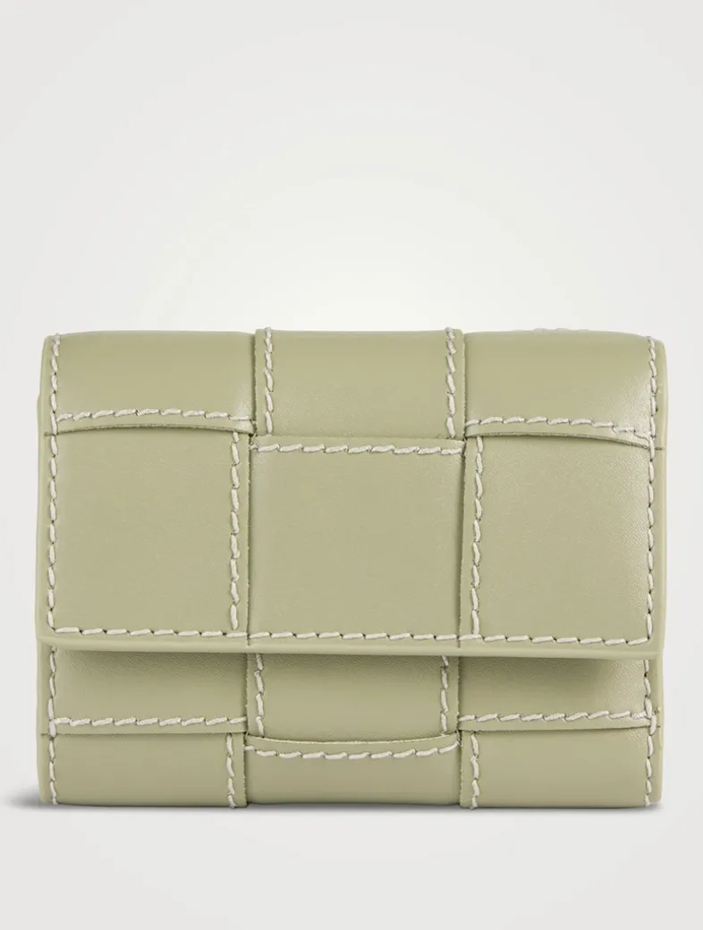 In an oversized version of Bottega Veneta’s signature woven design highlighted with contrast topstitching, this leather wallet has a compact design. It features six card slots, one bill compartment, two additional pockets, and one zipped coin purse to keep your essentials secure.