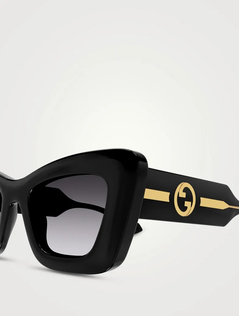 Featuring a bold injection front frame with a cat-eye shape, these sunglasses are designed with exposed corewire arms and interlocking G logo temples.