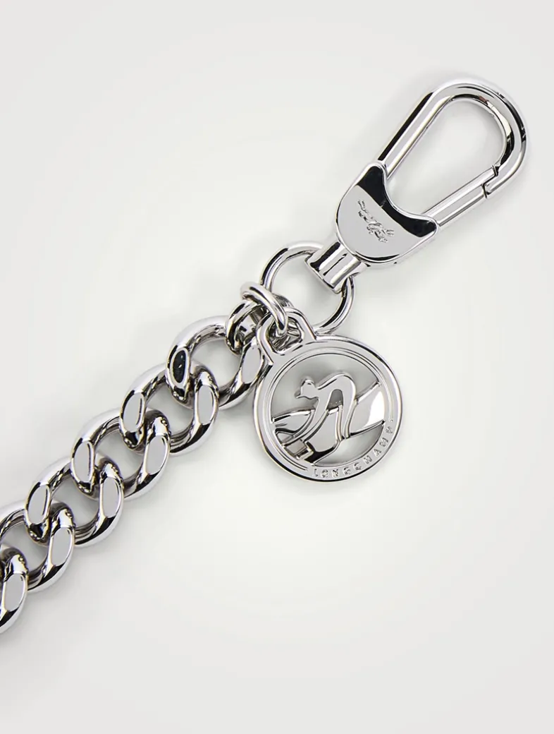 This short shoulder strap adds contrast to your bags. The Longchamp Rider medal adorns the chain, imparting a signature touch of elegance.