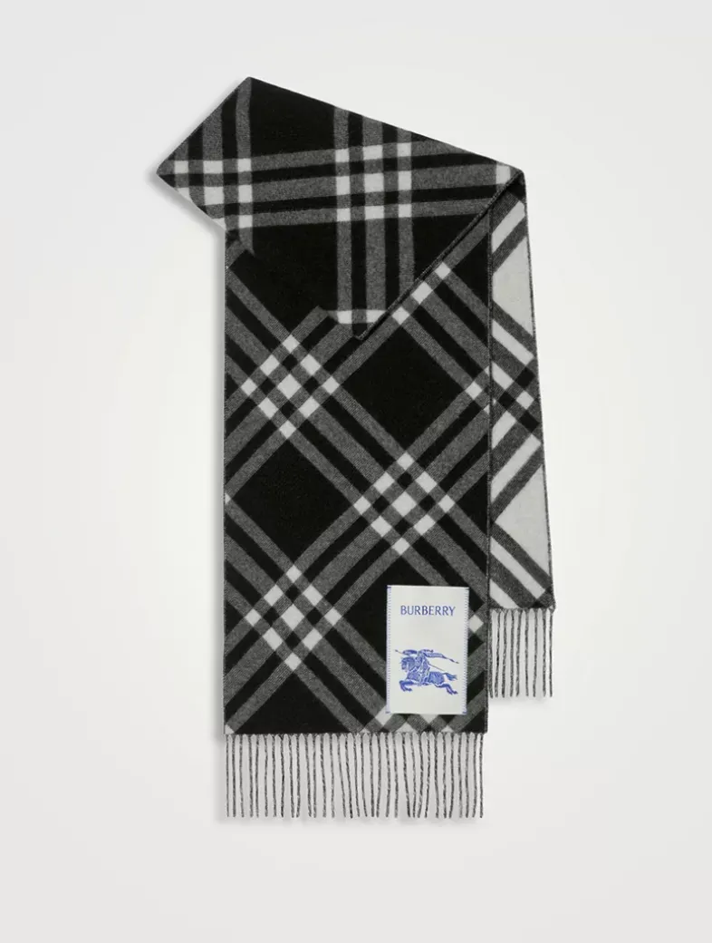 A scarf in double-faced cashmere, woven with a seasonal check at a 200-year-old Scottish mill. The fabric is washed in local spring water and receives an additional wash for an ultra-soft finish and raised nap.